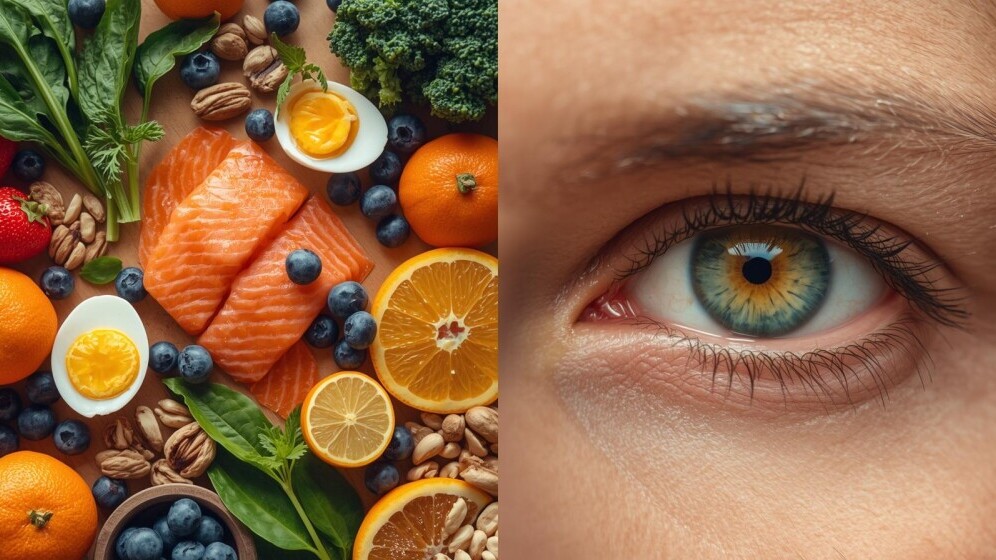 A diet rich in colorful fruits, vegetables, whole grains, and omega-3 fatty acids supports long-term eye health. Think: leafy greens, berries, citrus, eggs, and fish like salmon or sardines.